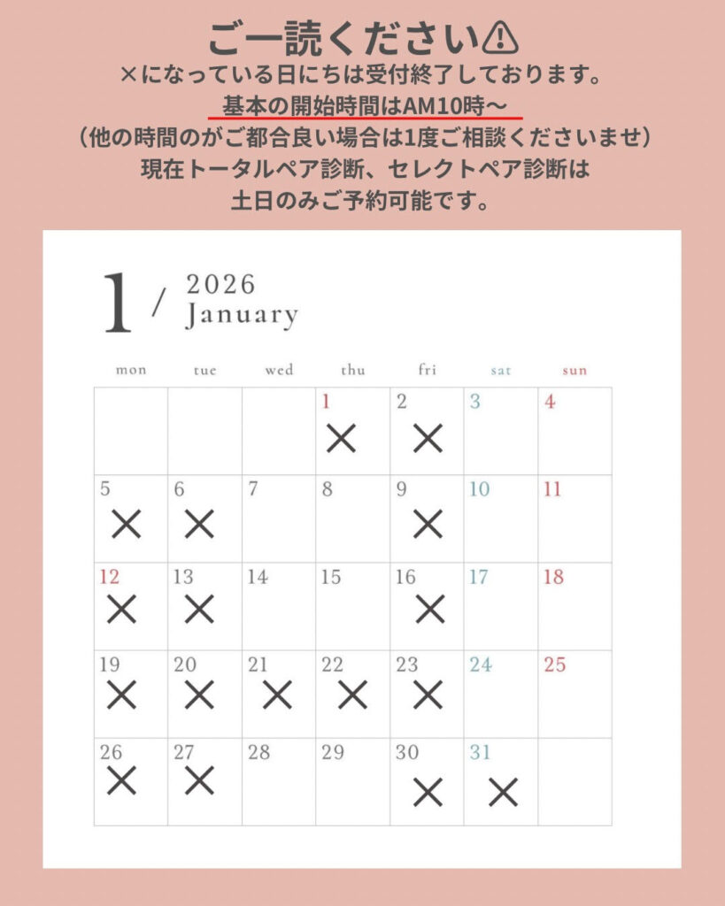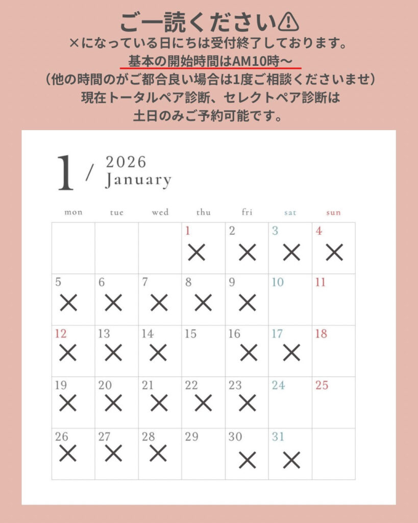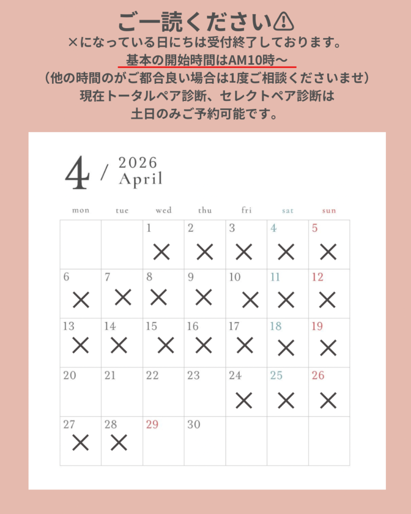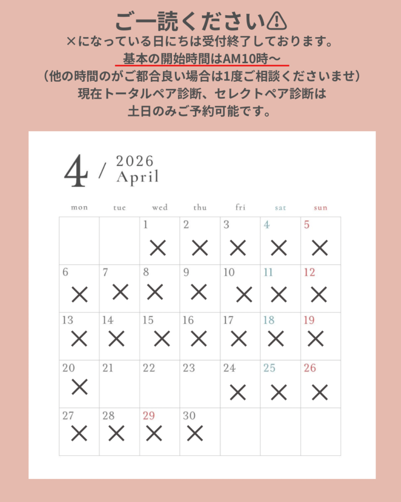 現在ペアのトータル診断、ペアのセレクト診断は土日のみご予約可能です。